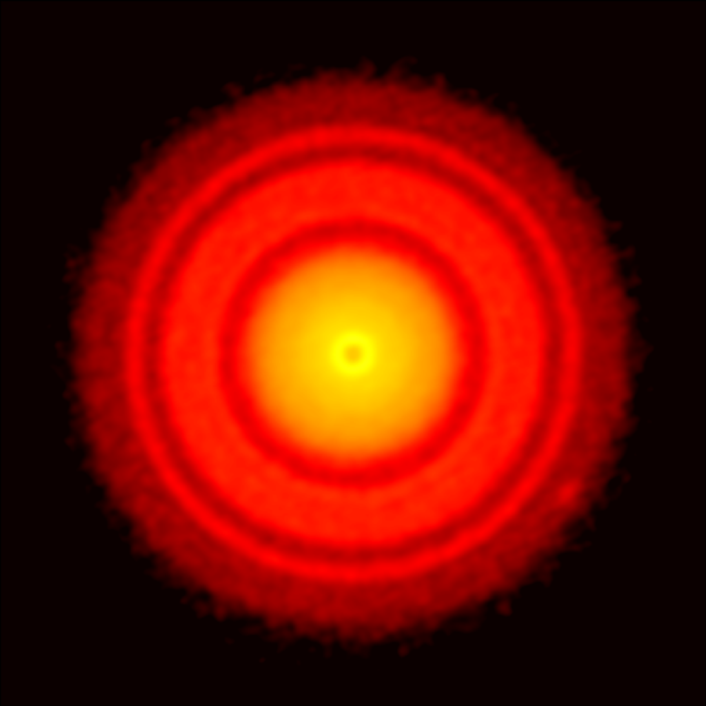 Protoplanetary disk surrounding the young star TW Hydrae as observed by ALMA.